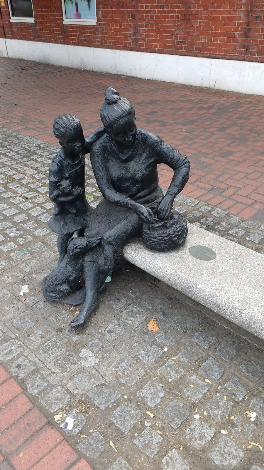 Esta tierna escultura llamada Relationships de Sue Groom está hecha en fibra de vidrio y resina de bronce. Fue desvelada en el año 1997.